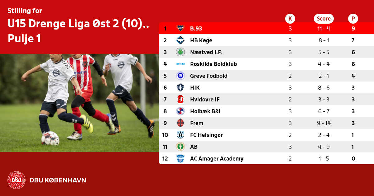 U15 Drenge Liga Øst 2 (10) Forår, Pulje 1