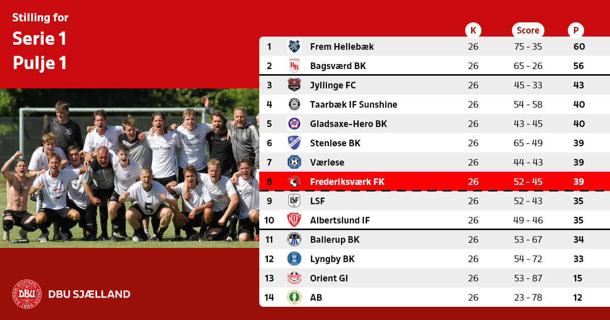 De to 1´ere spiller Finale lørdag den 17. juni 2022 kl. 14.00. Bedst pointgennemsnit har hjemmebane i finalen.
