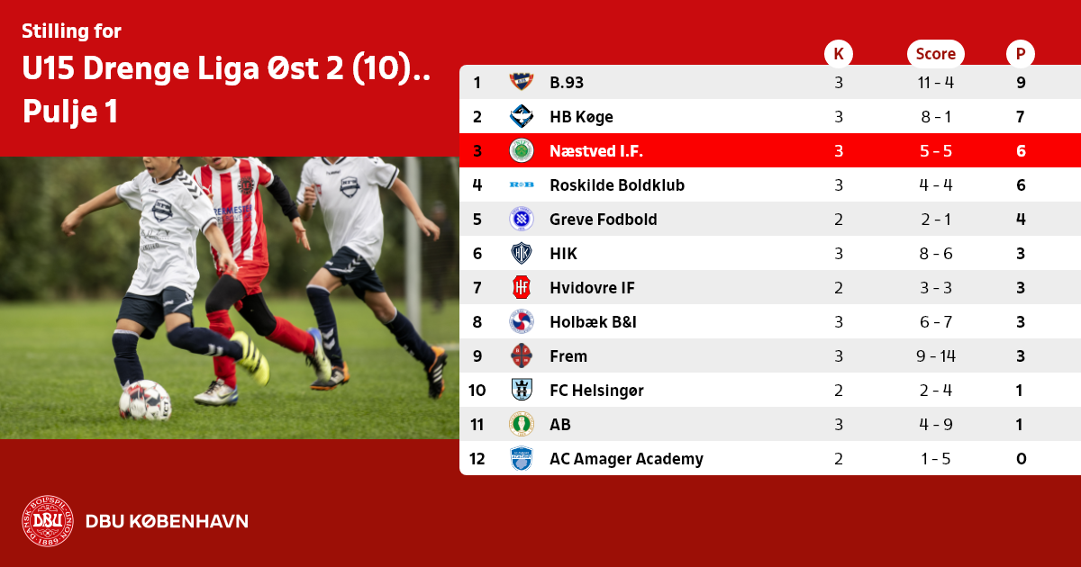 U15 Drenge Liga Øst 2 (10) Forår, Pulje 1