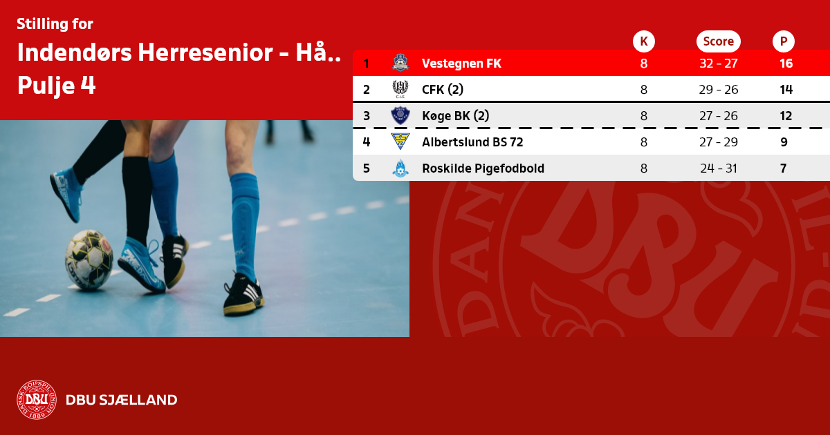 A = 20 hold forbliver i række A til mellemrunden 29. januar 2023.