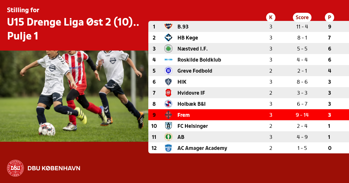 U15 Drenge Liga Øst 2 (10) Forår, Pulje 1