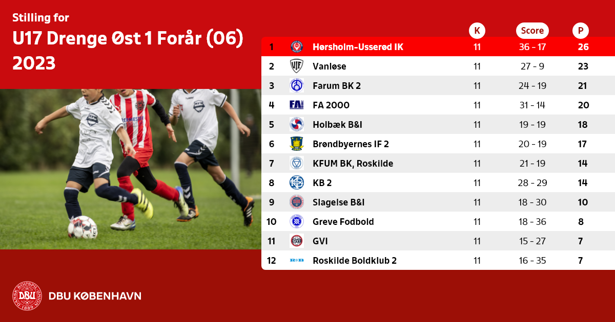 Husk hjemmekampe i weekenderne for hold under DBU København spilles på tiderne kl. 1000 – 1200 – 1400 og 16.00.